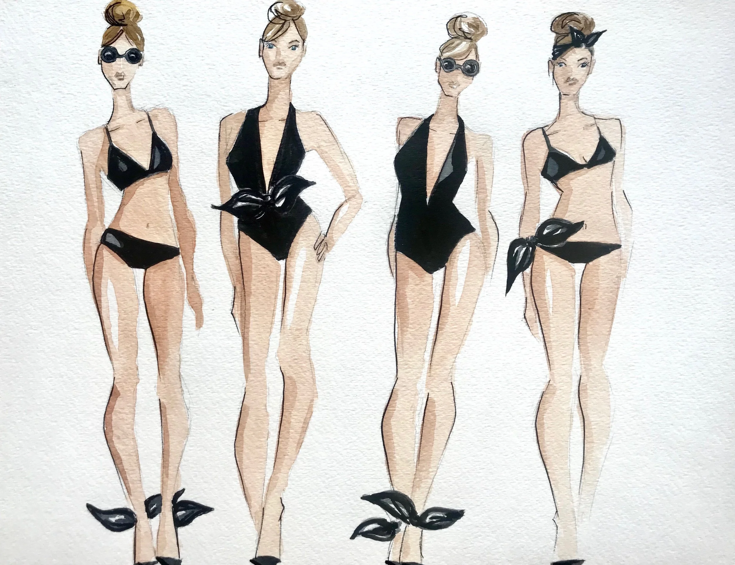 Sarah specializes in womenswear and accessory illustrations. She works in watercolor, gauche, marker and pen work.